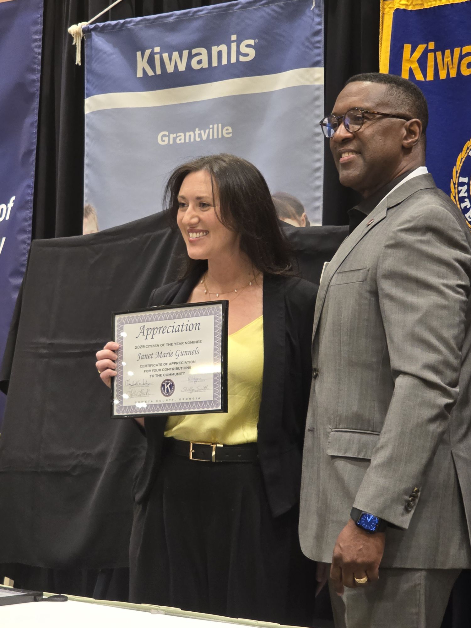 The Citizen of the Year, sponsored by the Kiwanis clubs of Coweta County, honors an individual showing outstanding leadership and citizenship within the community, demonstrating exemplary vision, civic pride, and a strong commitment to a better Coweta.