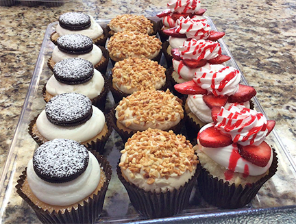 Tonya: “At Smallcakes, we bake fresh every single day. We offer a variety of cupcake flavors daily in addition to offering gluten free, vegan and even pupcakes for our little furry friends. Not only do we offer cupcakes, we also bake custom cake orders for holidays, weddings, and special events as well as decorative cookies, cake pops and brownies.”