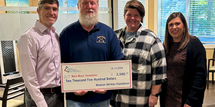 Pictured above is one of three new grant recipients from Newnan Utilities’ Caring Customers program. Pictured from left from More Music Foundation are Aaron Mabom, Chad Staples, Tonya Graham, and Melissa Payton.