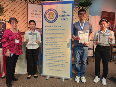 Pictured above are contest winners (left to right) Jean Cotton, Optimist Club Contest Chair; Susie Park; Jonathan Colon-DeJesus; and Michelle ... -