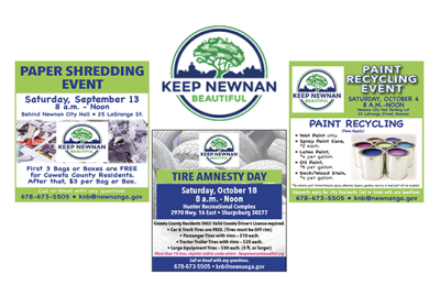 From Staff Reports The second half of 2025 features five Keep Newnan Beautiful recycling events here locally. Local residents will ... -