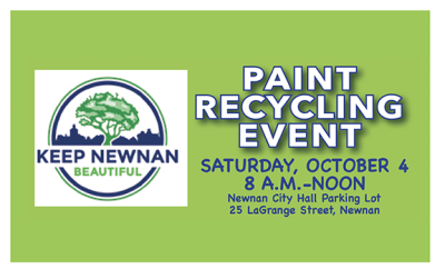 From Staff Reports Keep Newnan Beautiful will host its second Paint Recycling Event of 2025 on Saturday, October 4. Fees ... -