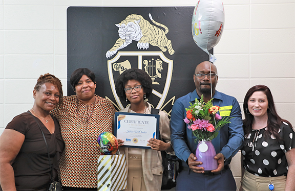 Emily Kirk, Northgate High School, 2023 CFEMC Washington Youth Tour Delegate, Pictured with Family, Guidance Counselors, and CFEMC Staff.