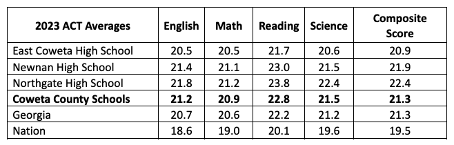 2023 ACT results released in October showed that the Coweta County School System’s 2023 graduates overall outscored U.S. graduates on the college entrance exam.