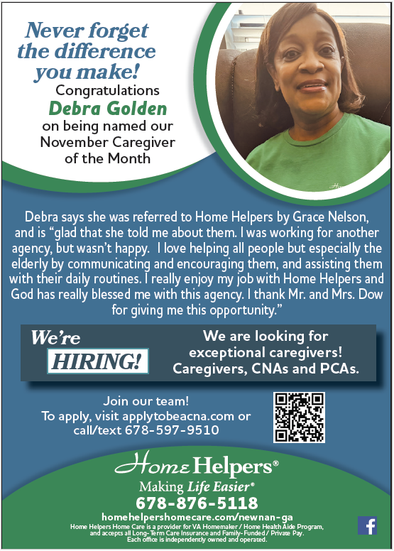 Home Helpers Home Care of Newnan has named Debra Golden as its November Professional Caregiver of the Month.