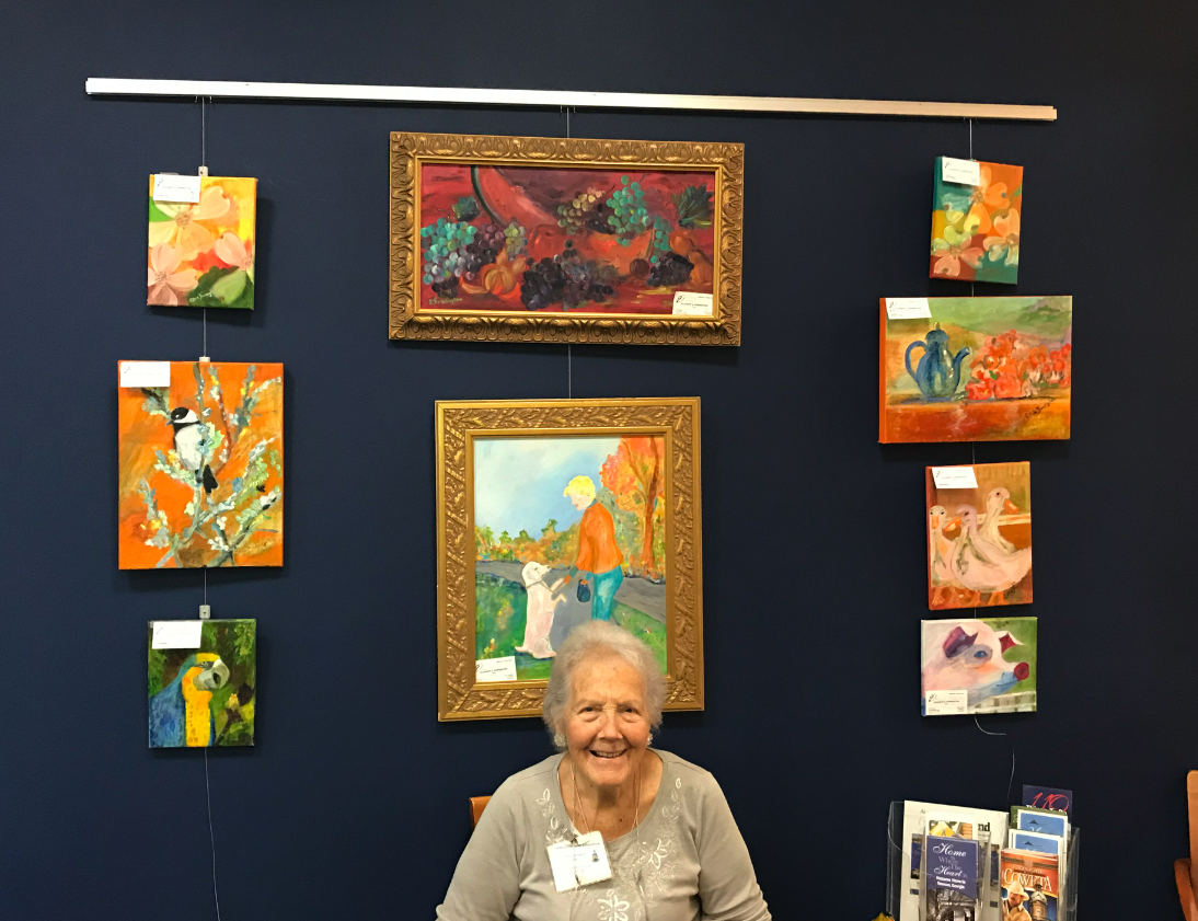 In 1988, she became aware of the oil painting lessons offered through the Recreation Department with Tom Powers and began to pursue her dream of learning to paint. She took lessons from Tom as long as they were available. She has taken workshops and continues to paint weekly with a group of local artists.