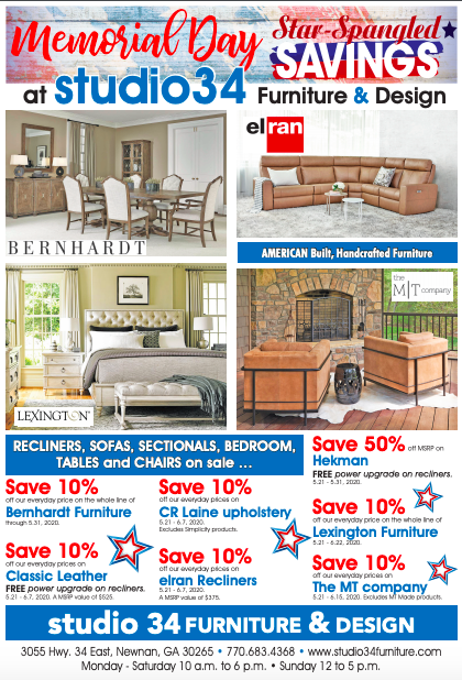 Big Memorial Day savings at Studio 34 Furniture and Design covering sofas, sectionals, tables, chairs, bedrooms and much more.