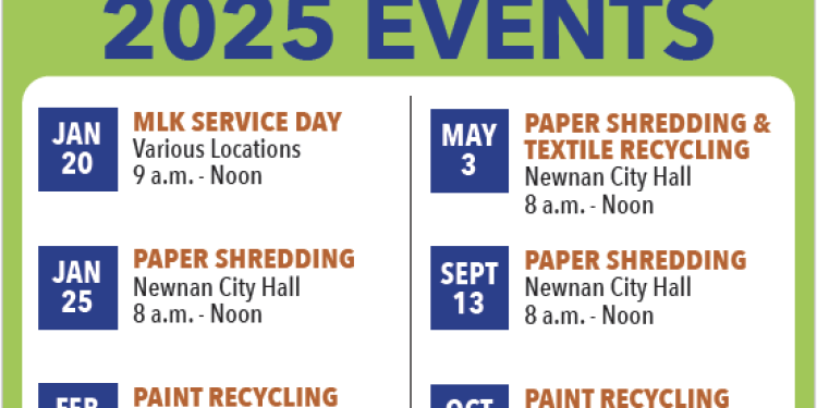 Keep Newnan Beautiful has announced its 2025 Recycling Calendar with 11 events planned over the course of the upcoming year.