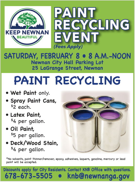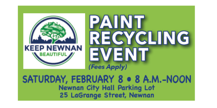 Keep Newnan Beautiful will host the first of two Paint Recycling Events in 2025 on Saturday, February 8.