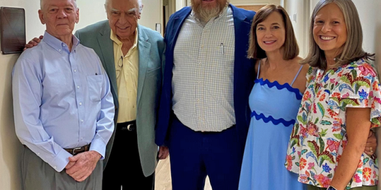Pictured above: Representatives from Newnan Presbyterian Church celebrate their $135,000 gift commitment in the future Dental Services Wing at the Coweta Samaritan Clinic.  Photographed (L-R) are: Jacob Story, Clerk of Session; Bob Coggin, Elder; Rev. David Jones; Kim Wise, Elder; and Dr. Kay Crosby.