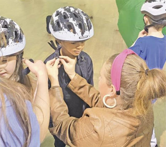 Employees at Yamaha put the bikes together and then get them to each school. And most importantly, they lift the parachute.