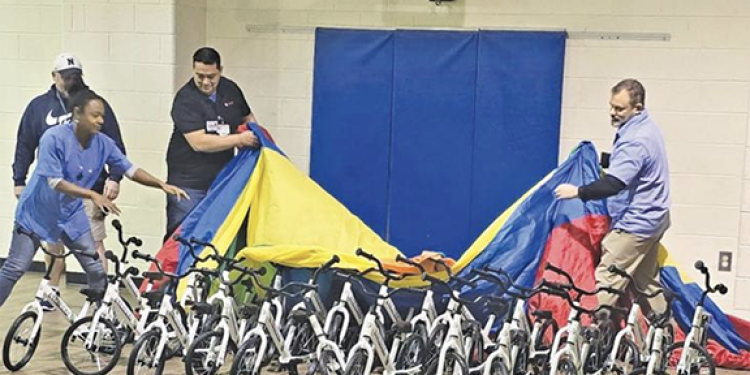 There was a reason to all this madness. Because under that parachute were a couple dozen balance-to-pedal bikes. They were being donated to the school, and specifically the gym department, so every kid in that school would know how to ride a bike.