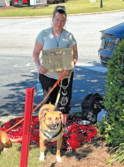 *Briana stands outside the Quik Trip in Newnan, with her two dogs and a sign that reads “Homeless – Please Help Us.” She is well-spoken, humble, and gives me permission to share her story.