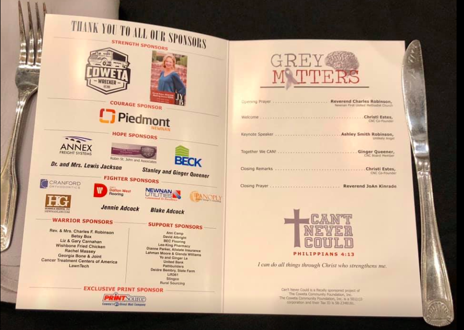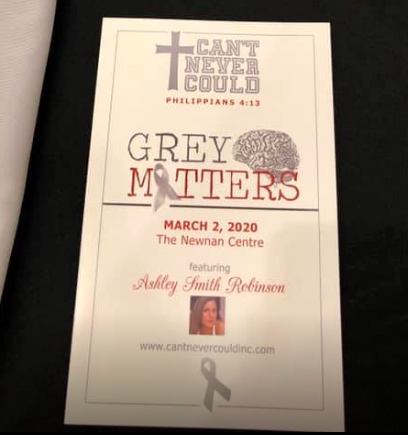Ashley Smith Robinson, the author of “Unlikely Angel – The Untold Story of Atlanta’s Hostage Hero, was the featured speaker at the annual Grey Matters Dinner sponsored by Can’t Never Could.