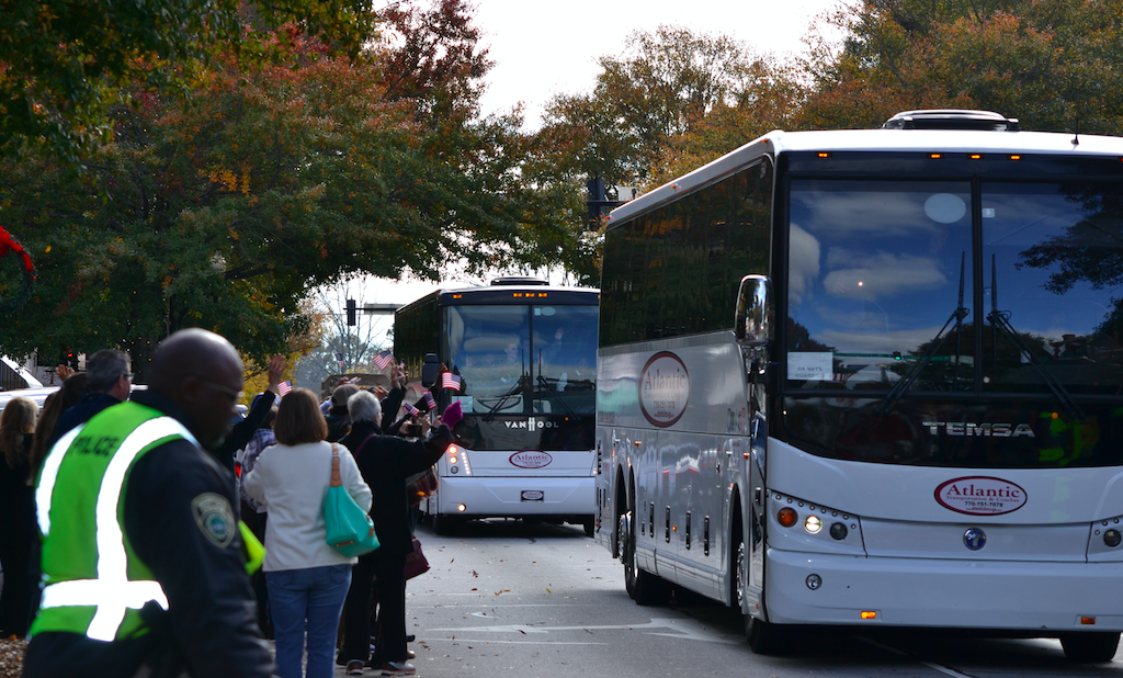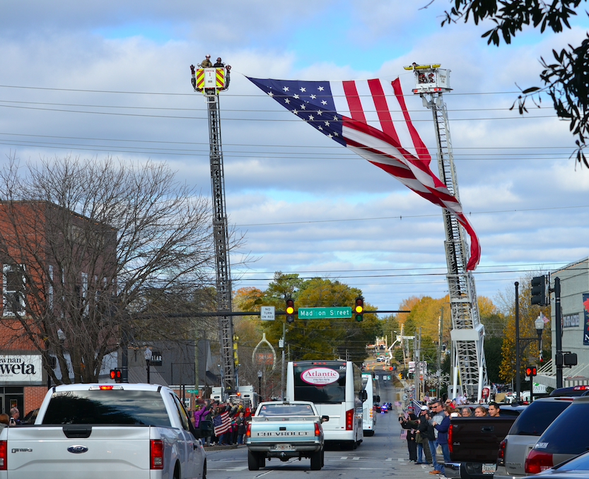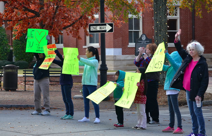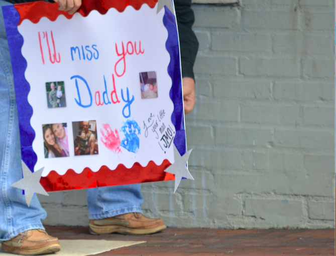 Newnan’s Bravo Company, 2nd Battalion, 121st Infantry, 48th Infantry Brigade, was given a rousing send off as they head off to Fort Stewart for training before being deployed in the War on Global Terror.
