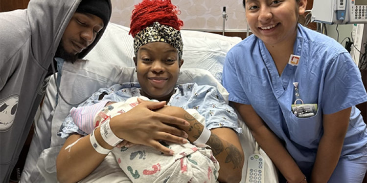 The family is pictured above with their labor and delivery nurse, Yuli Riscajche, RN.