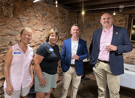 On hand for the recent Public Safety Foundation meeting with local LEOs are, from left, Foundation board members Rebecca McCollum and Jacki Parker, Nic Burgess of EMA/911 and Warden Jeff Rogers.