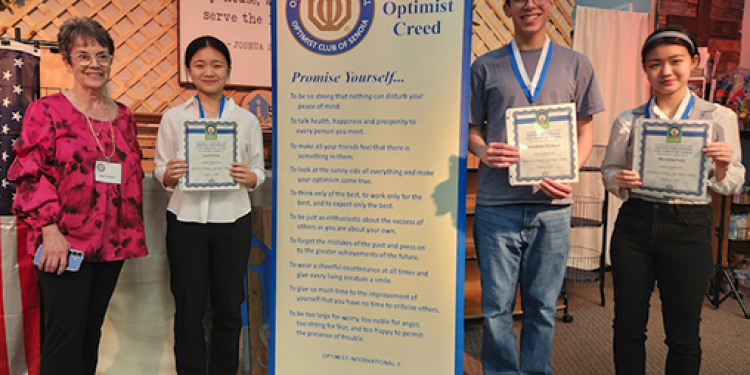 Pictured above are contest winners (left to right) Jean Cotton, Optimist Club Contest Chair; Susie Park; Jonathan Colon-DeJesus; and Michelle Park.