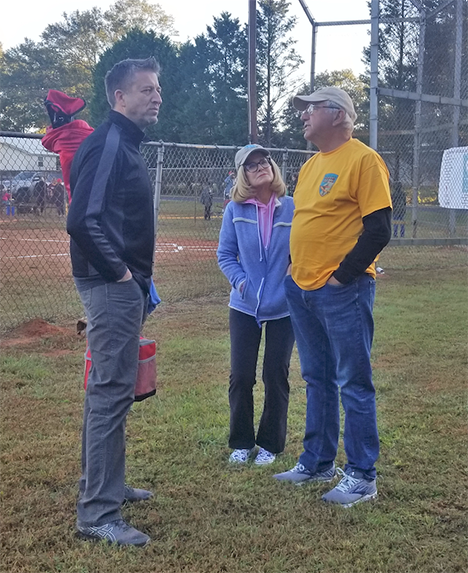 Joe Crain, organizer of the Coweta Sports Hall of Fame, threw out the first pitch. Two impromptu teams competed – the Lewises versus the Grizzards. The Grizzards won 17-11.