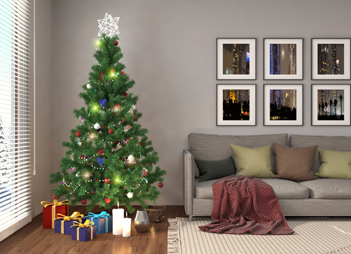 Only one Christmas tree with about half the decorations that you normally use is recommended. Having the tree covered up in every ornament made or purchased that you own, can be overload to a buyer and take the focus off your house and on your ornaments.