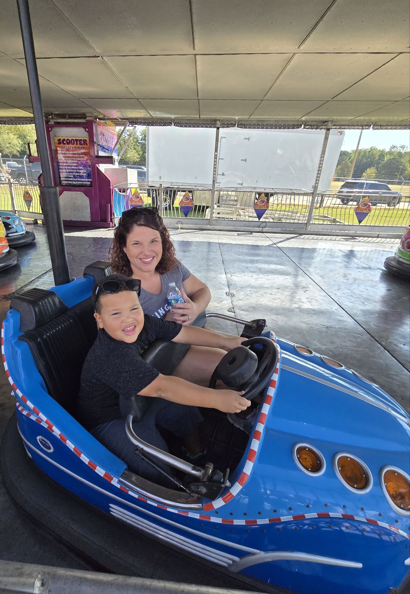 On the only Tuesday that the Kiwanis Coweta County Fair is held, the parking lot is crammed with dozens of yellow school buses.