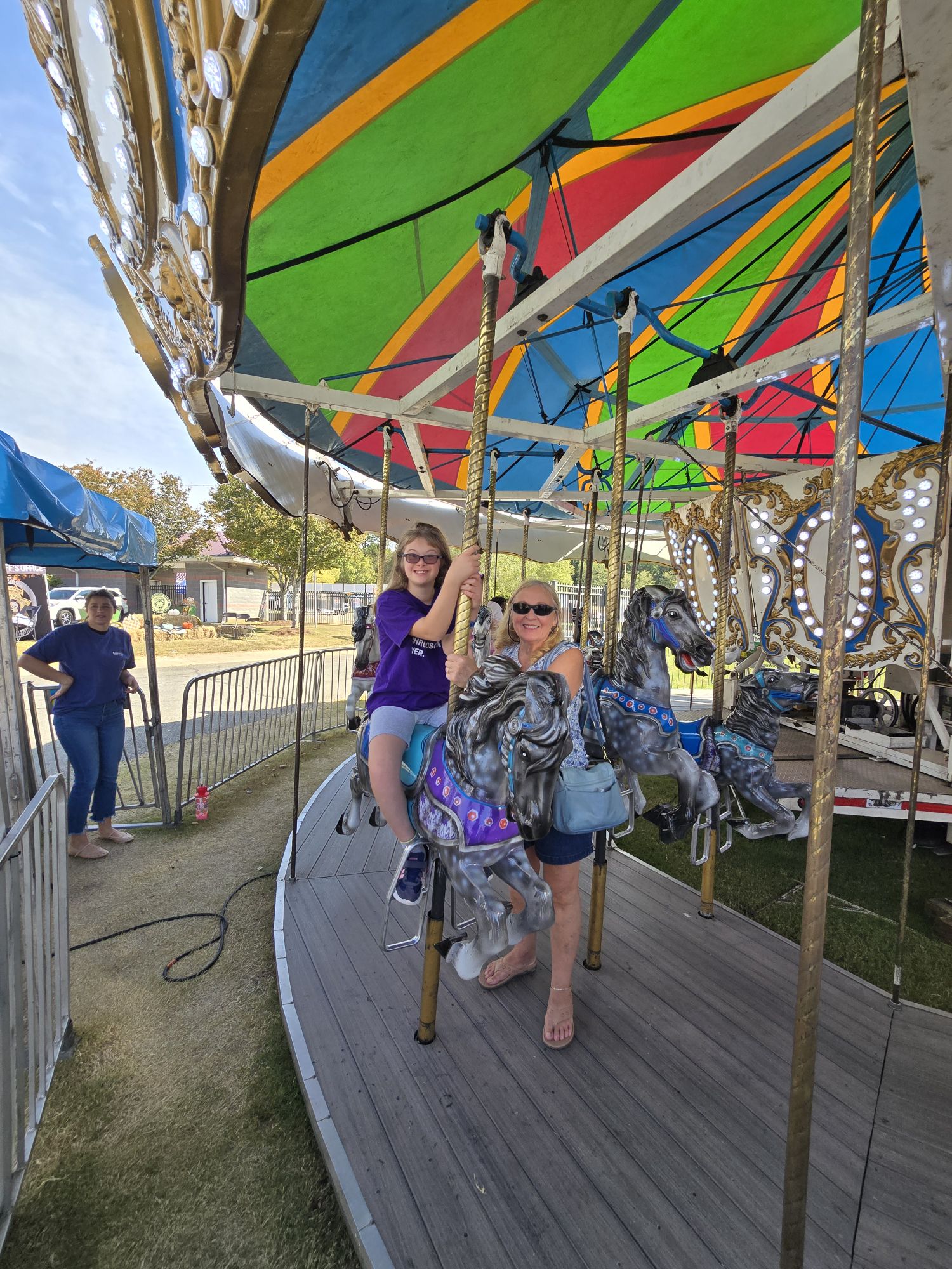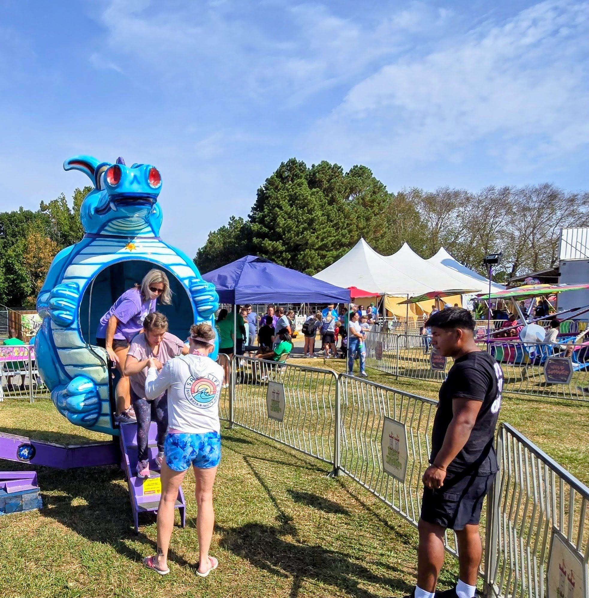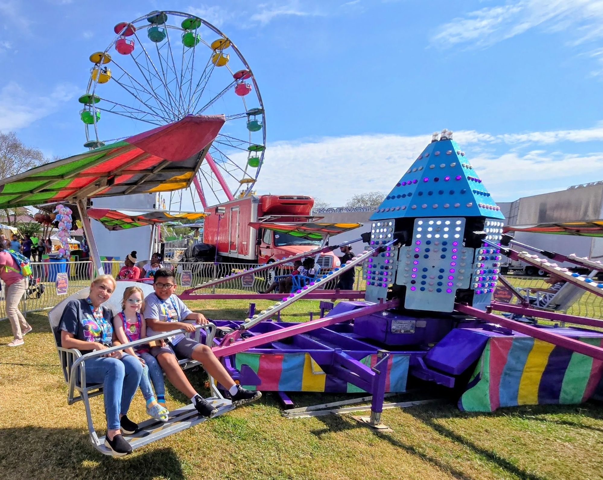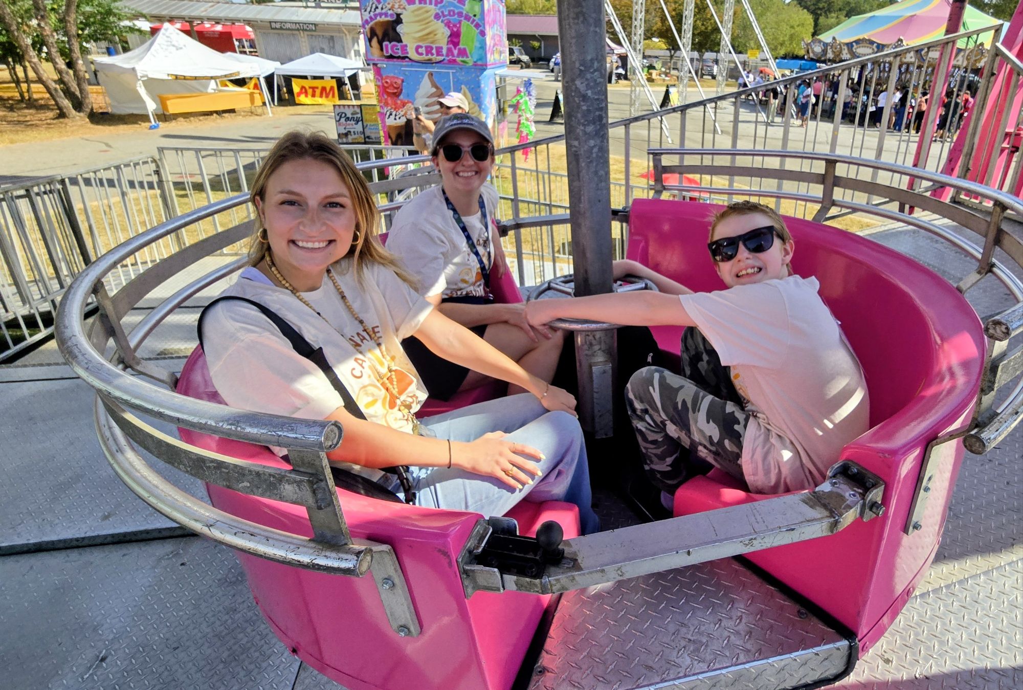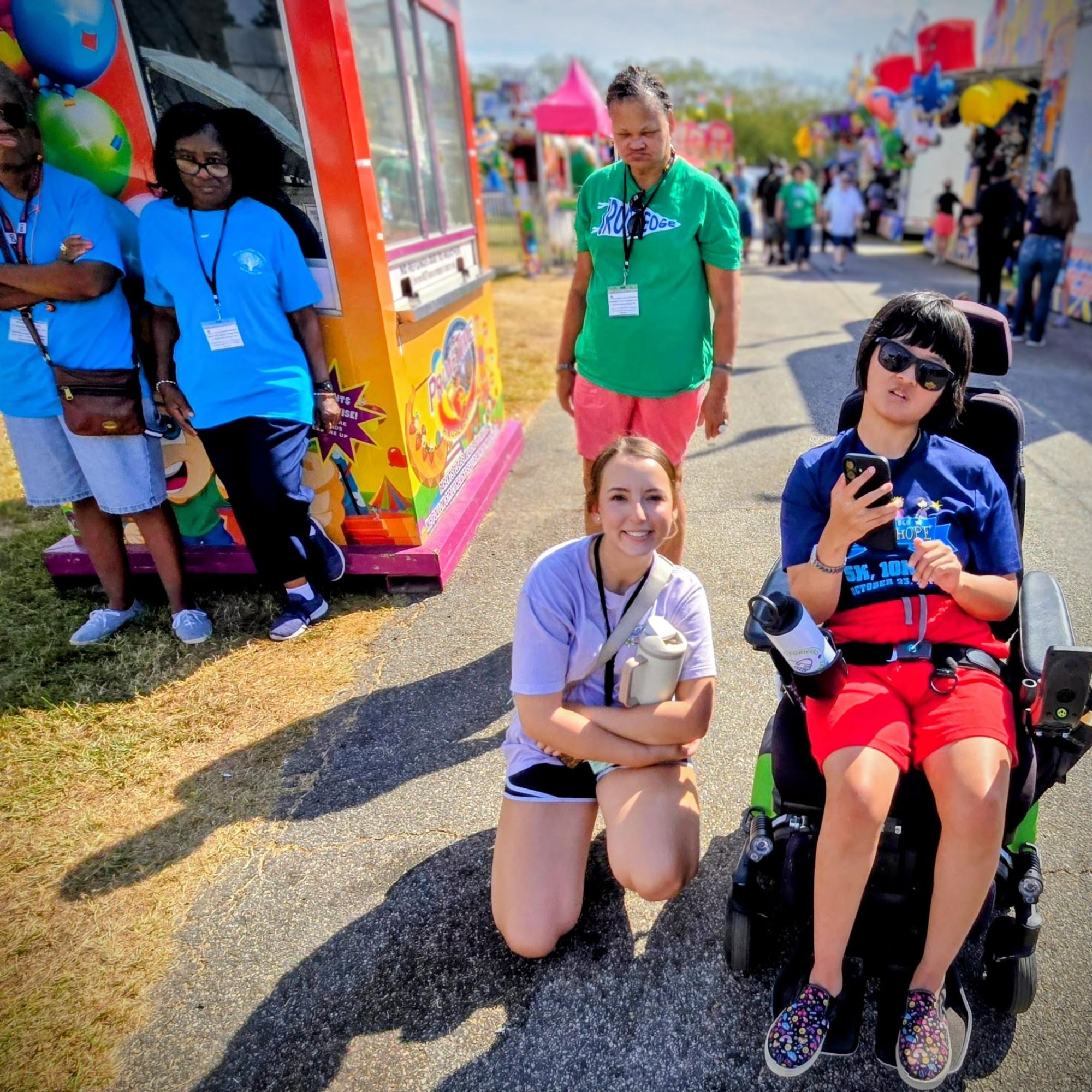They start arriving around 11 a..m. Soon, roughly 600 special needs children and adults, as well as parents and caregivers, begin to swarm the rides. The Ferris Wheel is always a big hit, as is the merry-go-round and the bumper cars.