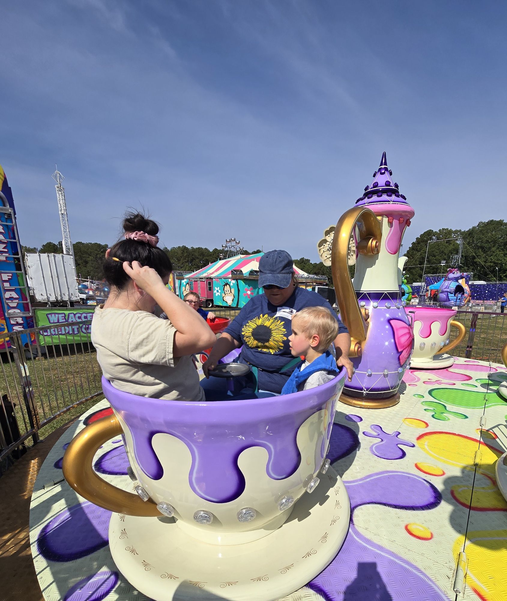For a couple of hours or so, kids are picked up out of their wheel chairs and get to ride and slide and twirl and … well, have some semblance of a “normal” childhood. And then after all the rides, they all sit together for lunch.