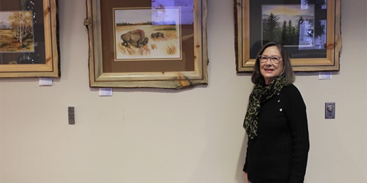 The exhibit at Newnan City Hall is a collection inspired by summers spent in southern Wyoming. It includes paintings of majestic mountains, fall aspen trees, and drawings of wild horses in the Red Desert.