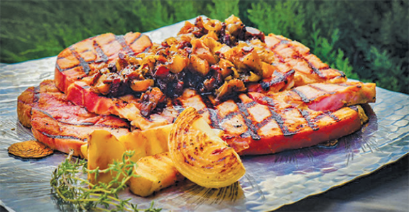 Grilled Ham Steak With Apple Bacon Jam