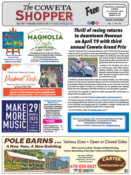 The March 19 issue of The Coweta Shopper is now available for our readers online in a digital replica format.