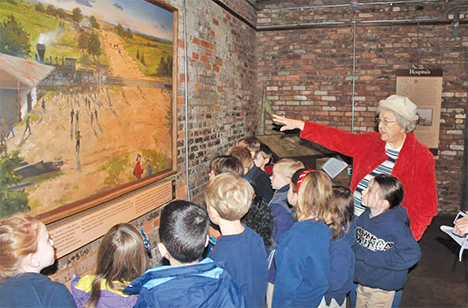 Pictured above is Elizabeth Beers giving students from The Heritage School a tour of the Train Depot in 2015.