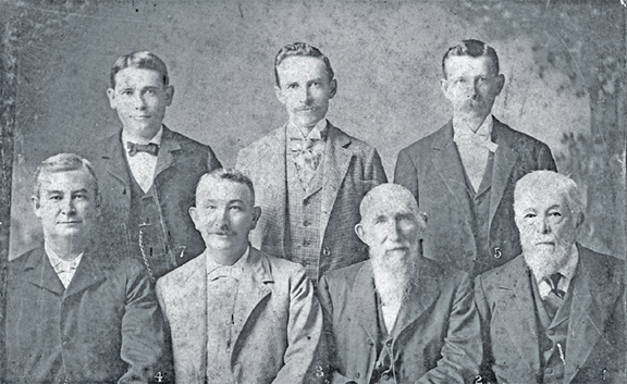 Pictured here, circa 1890s, are the central members of the Cole family responsible for the development, growth, and success of the R.D. Cole Manufacturing Company.  On the back row (left to right) stands Roy Nall Cole (Treasurer), Frank Bartow Cole (Engineer), and Edwin Marcus Cole (Manager Atlanta Office). On the front row (left to right) sits Madison Filmore Cole (General Manager) R.D.Cole, Jr. (Superintendent), Mathew Cole (Vice President) and R.D Cole, Sr.(President).