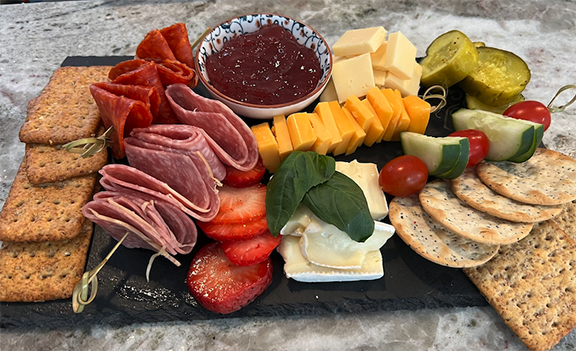 The lunch menu includes appetizers, sandwiches, pressed sandwiches, salads, flatbreads, and some crazy good “sweet endings.” Choices include Salami Get This, Gyr-o Hero, Brie Mine, Jurassic Pork, Cloudy With A Chance of Meatball, and so on. As an aside, the Double Dipper (prime rib, horseradish, cheddar, and au jus) is awesome.