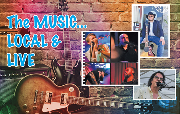 Pictured above (top right and clockwise) are some of the local artists to perform in the area this month – Trevor Meadows, Pat Mrizek and the Venus Kings.