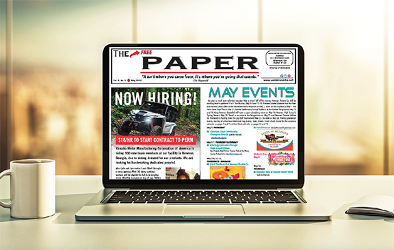 Readers will find inside this 28-page issue regular columns beginning with The Interview – a Q&A with Newnan Theatre Company Executive Director Mary Caroline Moore, Local and Live Music from Kris Youmans, The Little Things by Kelly Preston, Mr. Personality’s monthly dissertation, The Chef column with Nathan Metts, The Bookmark from Newnan Carnegie Library’s Susan Crutchfield, The Film Fix by Jonathan W. Hickman, Samantha Brazie’s monthly column The Journey, Real Estate by Jess Barron, Zen News and Notes, as well as our Locations Calendar, plus many advertising specials.