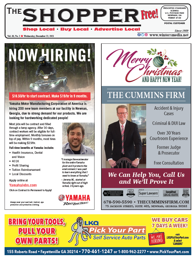 The December 22 print edition is mailed to Zone 3 which comprises of the 30263 zip code in Coweta County.