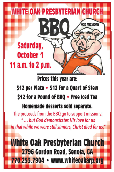 • BBQ, White Oak Presbyterian Church Annual Fundraiser