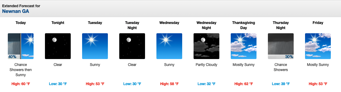 Below is the extended forecast for Coweta. For more weather information, visit: NWS Newnan Page.