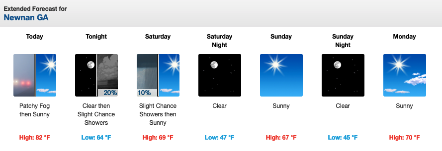 Coweta County’s weekend forecast from the National Weather Service.