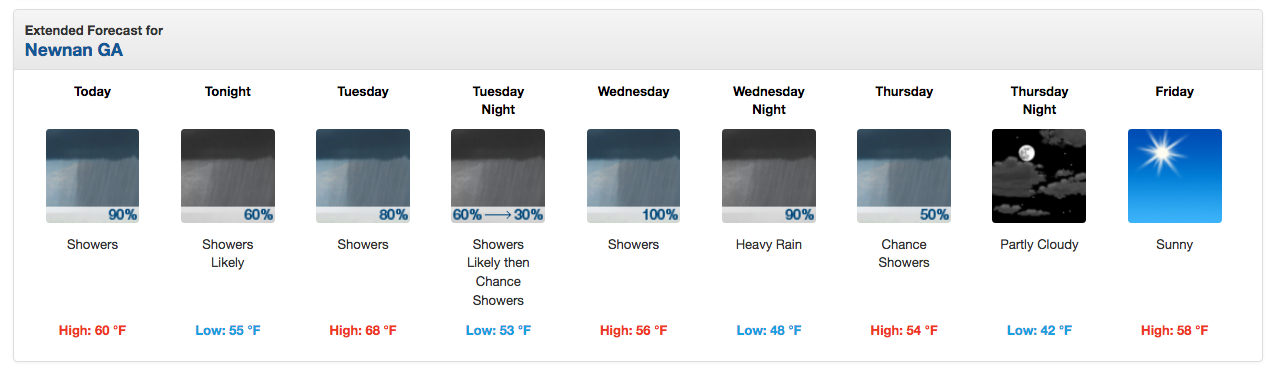 Weather Week in Coweta County: Rain moves in Monday, moves out Friday