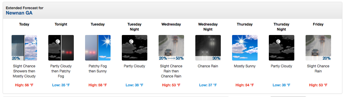 It’ll be a mixed bag of weather this week in and around Coweta County, according to the National Weather Service in Peachtree City.