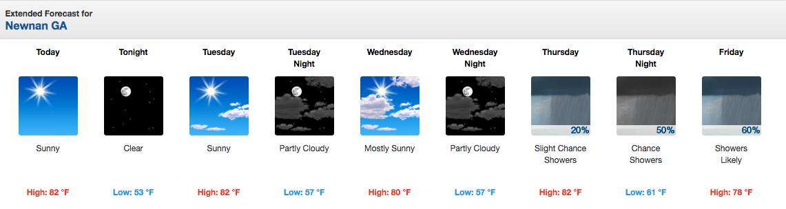 Weather Week in Coweta: Sunny, warm; chance of rain late Thursday, Friday