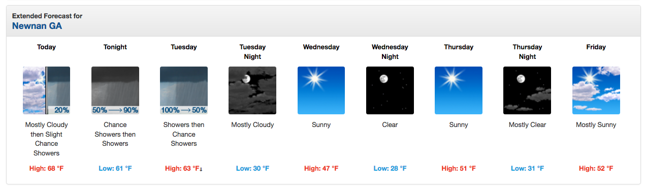 Below is the day-by-day forecast from the NWS: