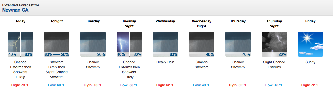 Below is the day-by-day forecast (subject to change) from the NWS. And for more weather information, visit: NWS Newnan Page.