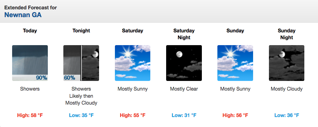 The Weekend Weather Forecast for Coweta County from the National Weather Service.