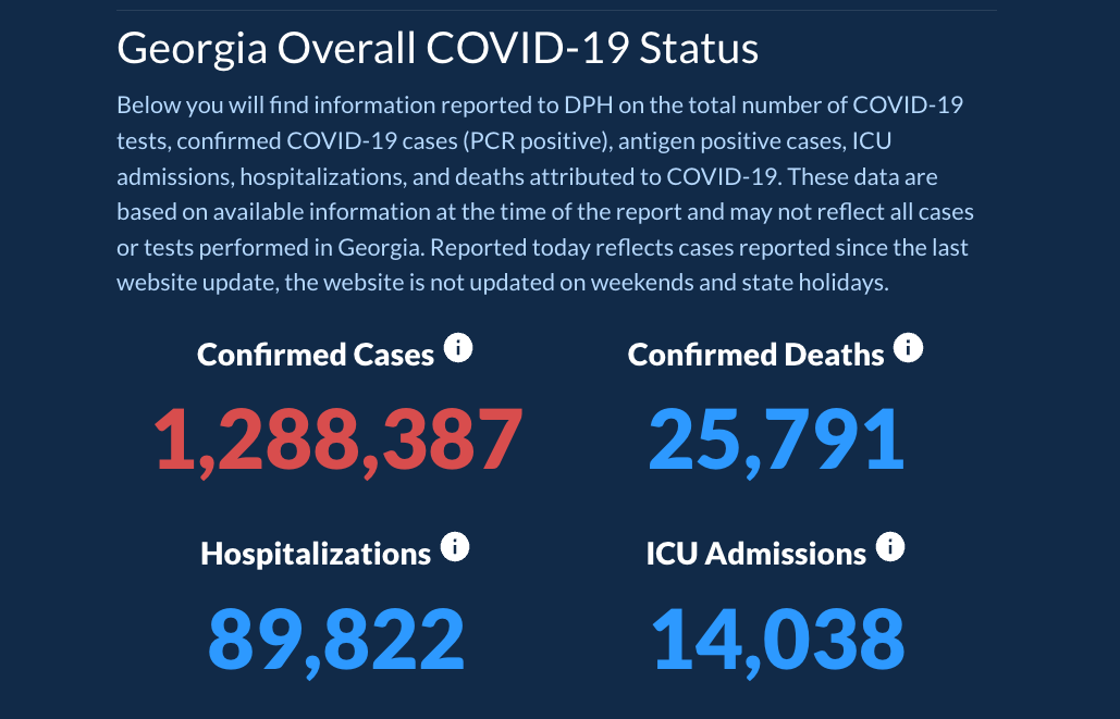 The Daily Status Report generated by the Georgia Department of Public Health publishes Monday thru Friday at 3 p.m.