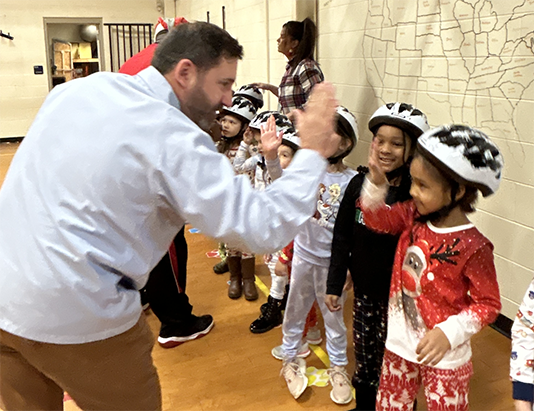 The most recent ceremony at Glanton revealed 24 balance-to-pedal conversion bikes, giving excited kindergartners the opportunity for their first rides.