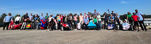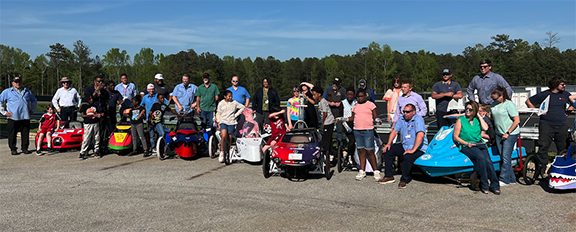 Yamaha team members and community teams meet with Yamaha Downhill Dreams Academy participants from the Newnan-Coweta Boys and Girls Club to do a test drive of the derby carts designed, assembled by the Academy teams for the upcoming Coweta Grand Prix.