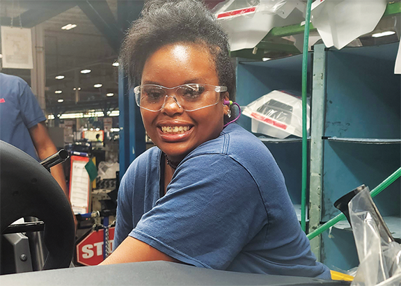 One of the employees benefiting from this program is Hadiya (DeeDe) Harden, an R.O.V. assembly worker at Yamaha. Having been with the company for two and a half years, she is responsible for installing fenders on side-by-side vehicles. She highlights the importance of ergonomics in ensuring the well-being of employees and enhancing their productivity.